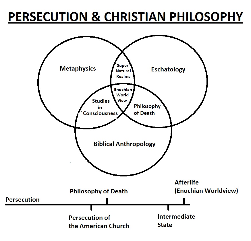 According to the diagram above, my research will focus intrinsically on Persecution, framed by a primal delineation of the Christian philosophical topics of biblical anthropology, death, the intermediate state, and the Enochian Worldview as expressed by Second Temple Period and New Testament writers.